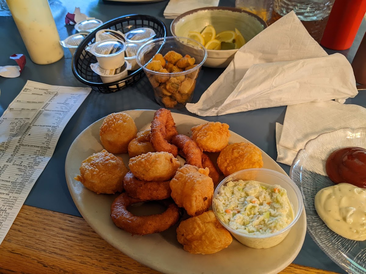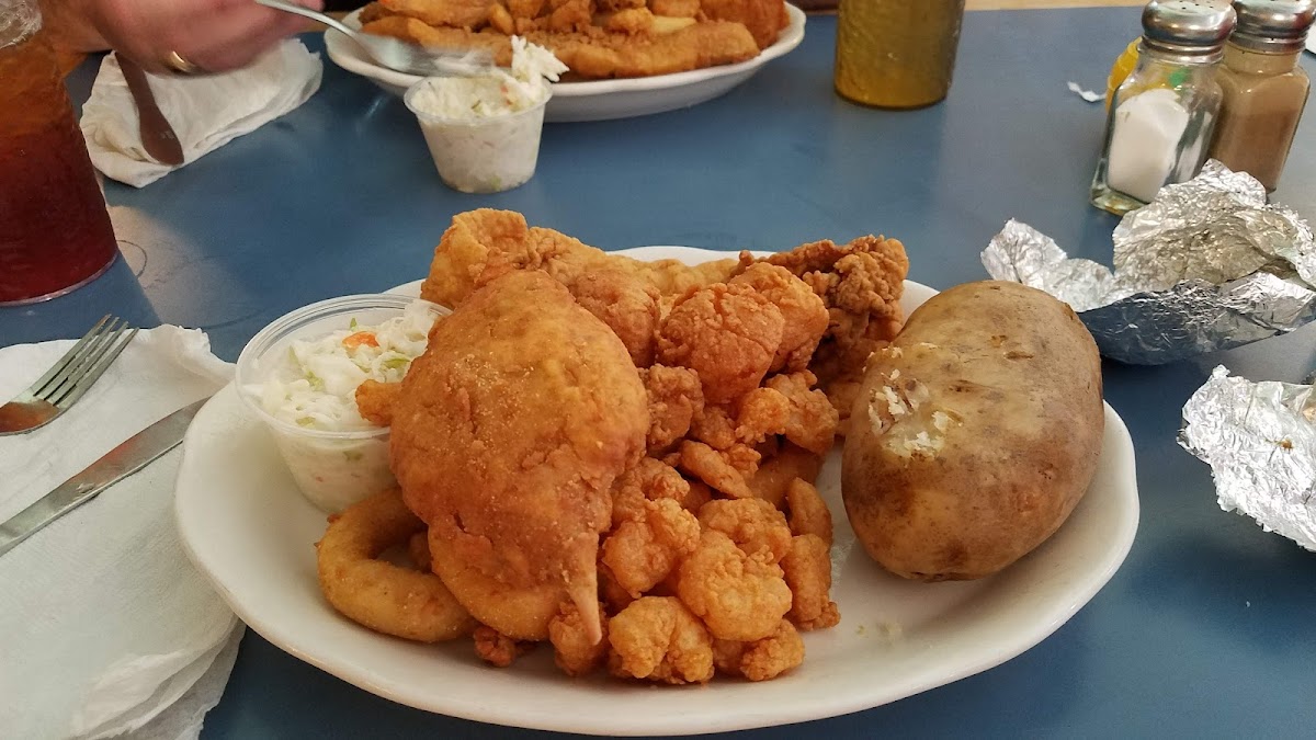 Seafood is the main draw here, with a variety of broiled and fried platters that cover favorites like flounder, scallops, shrimp, and clam strips. The Small Seafood Platter and Captain’s Platter give a solid sampling of what’s on offer, paired commonly with classic Southern sides such as hush puppies, coleslaw, and loaded baked potatoes. For a little variety, chicken tenders and steak dishes are also available, appealing to those who want a non-seafood option.